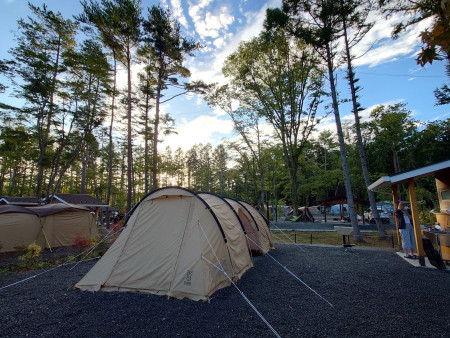 テントサイト11時30分、ログハウス12時